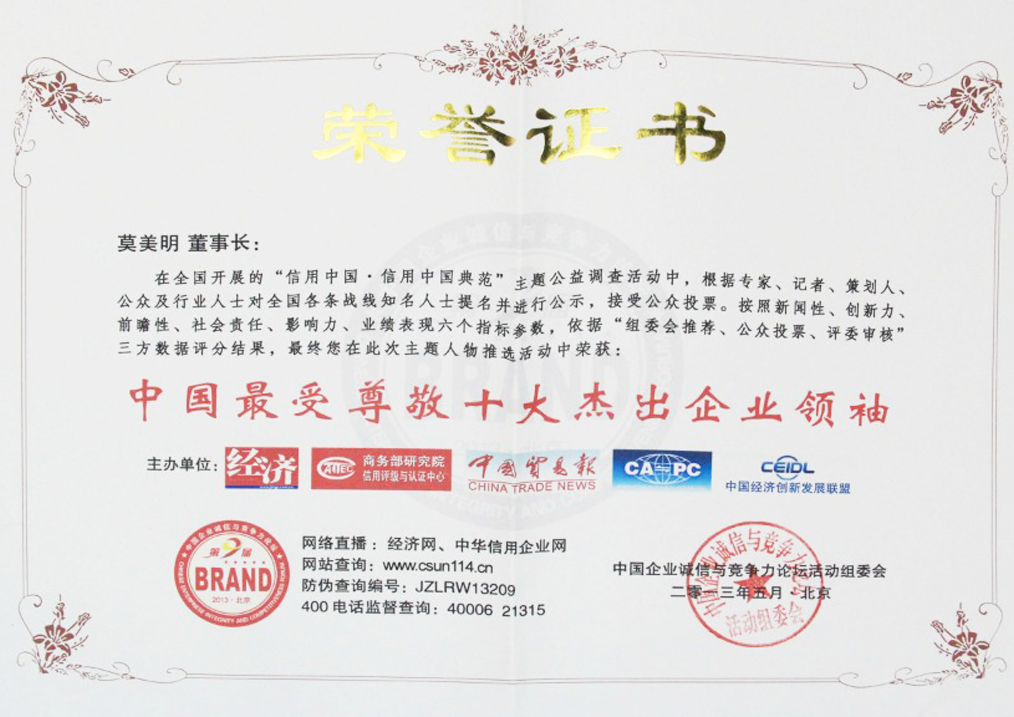 中國最受尊敬十大杰出企業(yè)領(lǐng)袖